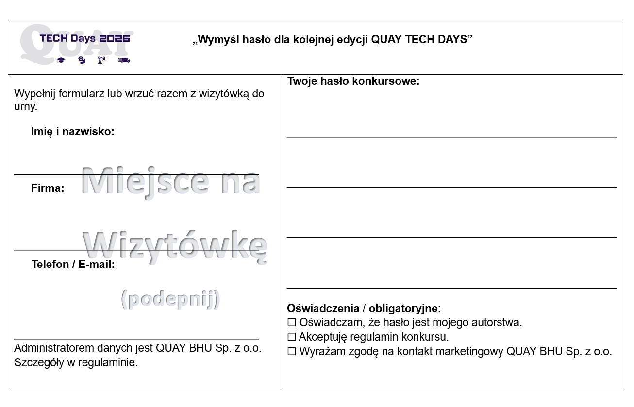 REGULAMIN KONKURSU „KONKURS WIZYTÓWKOWY – QUAY TECH DAYS 2026”